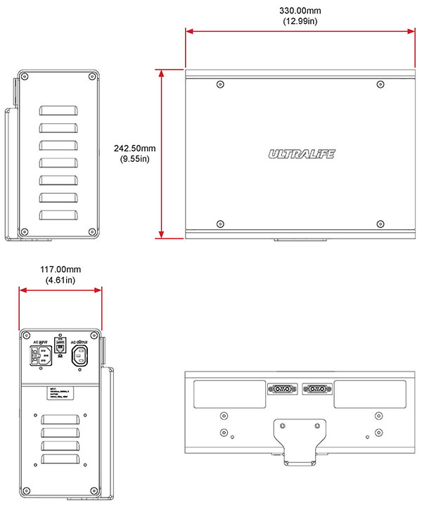 ULTRALIFE’s new X5 Power System for medical carts provides users with a reliable AC power supply, derived from one or two 276 Watt-hour Lithium Iron Phosphate X5 Hot-Swappable Batteries. A quick change battery cradle, powerful integrated hold-up battery, LCD umbilical display and optional two-bay charger with wall or desk mount options round out this revolutionary new power system.