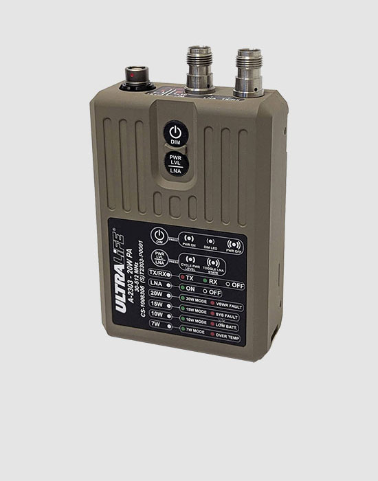 Communications Systems specialist Ultralife Corporation has launched the A-2303 — a compact, energy-efficient military amplifier that serves depot support applications. Weighing 540g (1.2lbs) and delivering 20 Watt with ~.75 to 5 Watt of RF drive power, the A-2303 is compatible with low-power personal role radios (PRRs) that are used in military and industrial applications across the globe. The amplifier is also designed for easy integration into existing equipment and is equipped with RS422 (I/O) for remote control and status reporting.
